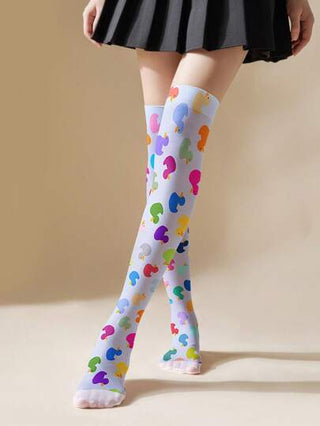 زوج من جوارب النساء الرقيقة المطبوعة ثلاثي الأبعاد باللون الأصفر بنقش البطة الصغيرة - مع تصميم جذاب ومرح، مناسب للحفلات/العطلات/الاستخدام اليومي، جوارب تصل إلى الركبة مطبوعة بالكامل على 360 درجة بقماش ناعم وم مّذف، تصميم حصري للربيع والصيف ، أحدث تقنية