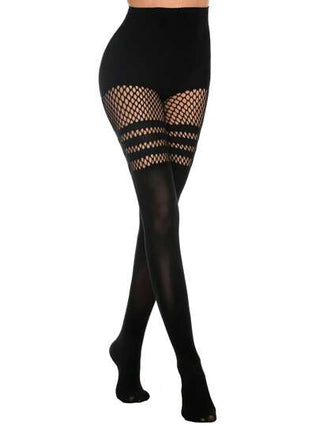 زوج من جوارب النساء المزيفة المحاكية للرباطات العالية الفخذ بتصميم شريطي جوث شباكي