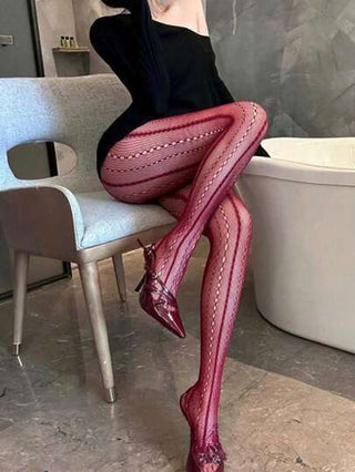 زوج من جوارب نسائية ذات بنية شبكية بمقاس كبير مع خطوط متناظرة لكل المناسبات مناسبة للربيع والصيف