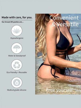 زوج من حماﻻت الصدر النسائية السيليكونية غير المرئية بدون حمالة قابلة لإعادة الاستخدام مع غطاء حلمة لاصق