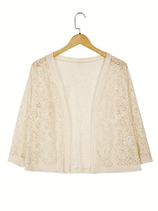 سترة مضلعة بأكمام 3/4 وجيب من الدانتيل الكاميليا