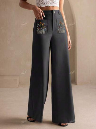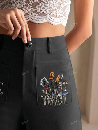 سراويل ذات ساق مستقيمة بخصر عالٍ لون أخضر نعناعي ذات جيبين مزينة بطرز أنيق بأزهار النهضة والفيري كور، بوهيمي ، أزياء حفلات الموسيقى في ناشفيل وإيبيزا والمهرجانات، أزياء عطلة، أزياء عيد الأضحى، عيد الأضحى المبارك