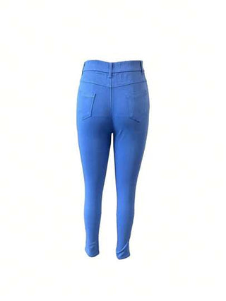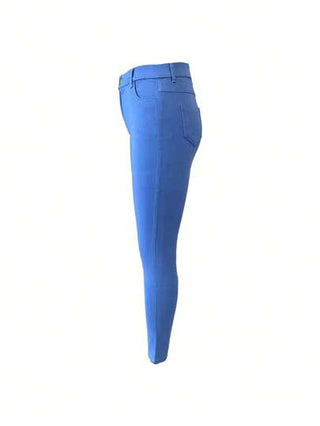 سروال بقصة ضيقة ومريحة مع جيوب مائلة وخصر عالي ومصنوع من قماش بتمدد فائق باللون الصلب، شكل عصري للإستخدام اليومي