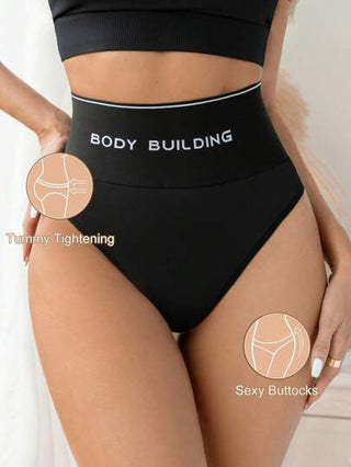 سروال داحلي لتشكيل الجسم بطباعة أحرف شريط خصر واسع