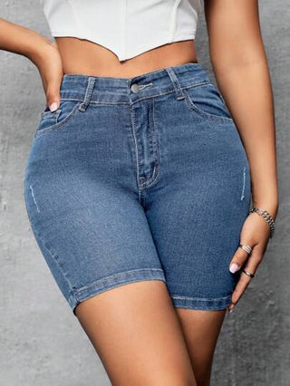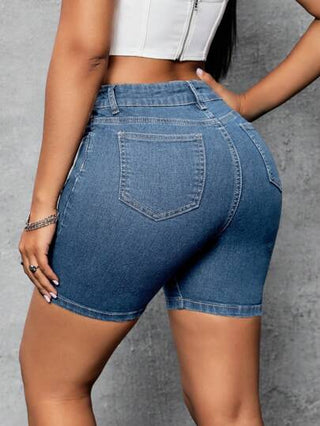 شورت جينز كاجوال بجيوب مع أزرار أمامية للنساء