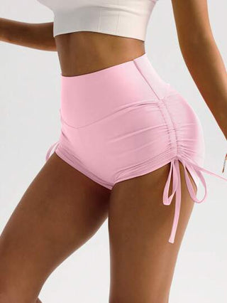 شورت كاجول قصير وردي اللون ذو خصر عالٍ وسحاب، مناسب للجري والرياضة والبيلاتس، مرن ومنفذ للهواء، تنعيم الخصر، مناسب للتمارين