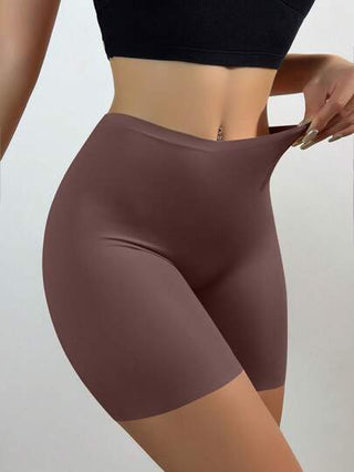شورت نسائي عالي الخصر ومثلث الشكل وغير لامع وبدون خياطة يحتوي على شورت داخلي لمنع الانزلاق والسيطرة على البطن
