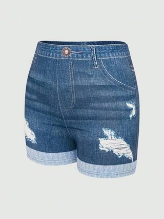 شورت نسائي مطبوع بنقش التأثير الجينز عادي