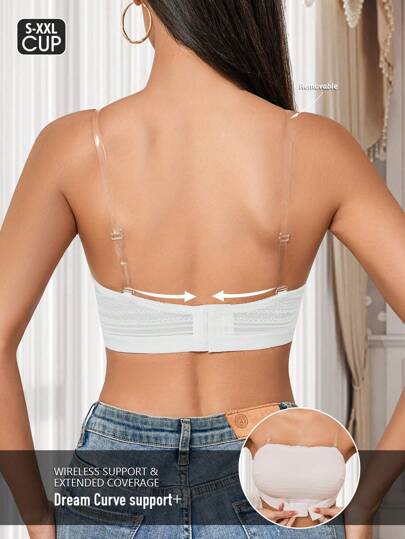 صدرية نسائية ذات اغلاق أمامي لاسلكي من قماش الدانتيل والزهور ، قابلة للإزالة الحزام والوسادة ، مع حزام شفاف قابل للفصل