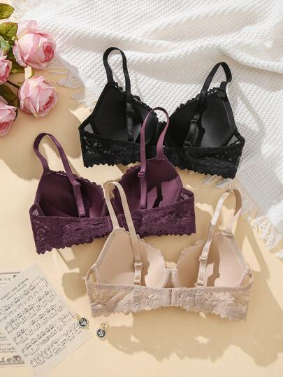 صدرية نسائية من الدانتيل مع سلك داخلي - 3قطع/طقم