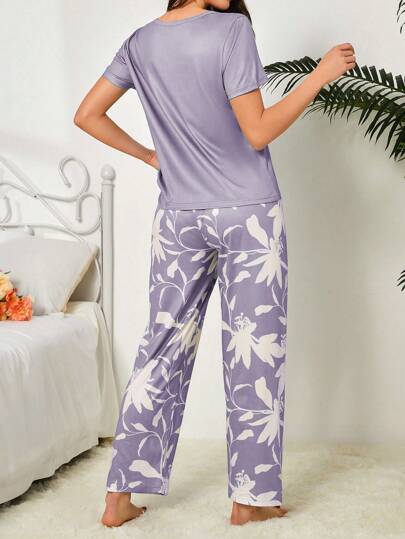 طقم بيجاما مطبوع مع رداء حرير الحليب 140 جم للنساء PJS1