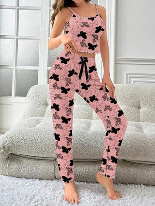 طقم بيجاما نسائي مكون من قميص كامي وبنطلون مطبوع عليه رسوم فراشات