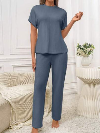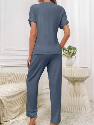 طقم بيجامة نسائية بأكمام قصيرة مضلعة وسروال طويل