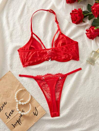 طقم توب محصور بألسنة الدانتيل أمامي بأزرار للنساء قطعتان