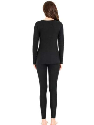 طقم ملابس داخلية حرارية للنساء - ملابس علوية رقبة طاقم + سراويل ، طبقة قاعدية بتركيب نحيف للخريف والشتاء