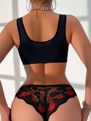 طقم ملابس داخلية مكون من قطعتين، سوتيان ببراقع أمامي من الدانتيل مثير متباين