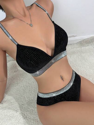 طقم ملابس داخلية من البرّاقة و الدانتيل مكون من سرة وبرّاقة، مجموعة موسم الخريف/ الشتاء للمرأة 2 قطع