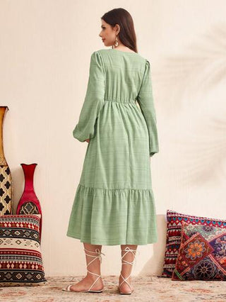 فساتين حمل برقبة على شكل V وأكمام منتفخة ، طراز ربيعي