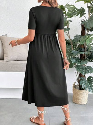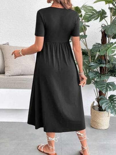 فستان الحمل، أحادي اللون ذو فتحة رقبة على شكل V وأكمام قصيرة، موضة صيفية