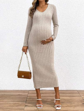 فستان الحمل الكاجوال ذو اللون الأحادي، مصنوع من الحياكة المضلعة, مناسب للربيع والخريف ذو أكمام طويلة