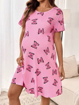 فستان بيت من القماش القطني بطبعة فراشة للأمهات أثناء الحمل في الصيف