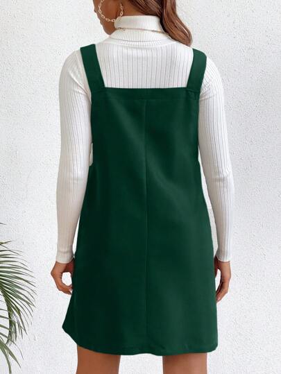 فستان حمالات حمل برقبة مربعة بلون سادة