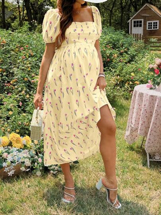 فستان حمل أنيق مطبوع بطبعة زهرة التوليب الأنيقة للصيف