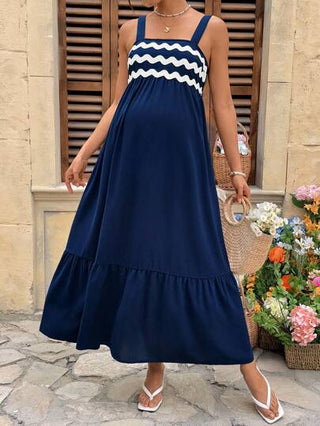 فستان حمل بخصر مموج و كشكشة بالهدب و بلا أكمام للعطلات