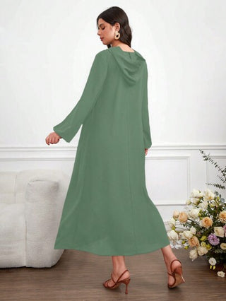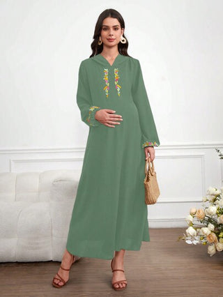 فستان حمل بغطاء رأس وتطريز وأكمام طويلة أنيق