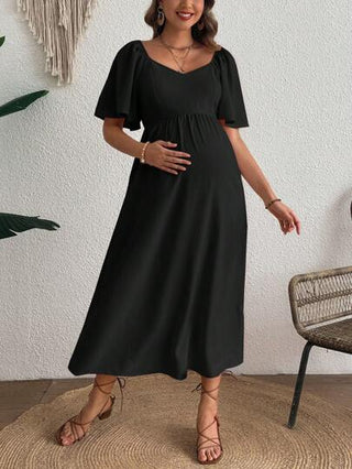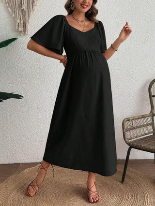 فستان حمل بياقة قلبية بأكمام بكشكشة وخصر مشدود وتنورة واسعة، مناسب للصيف والمناسبات الخاصة