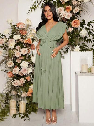 فستان حمل صيفي أنيق بطيات وكشكشة في الذيل ذو لون متناسق للنساء الحوامل