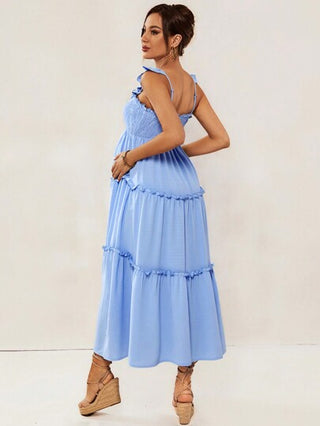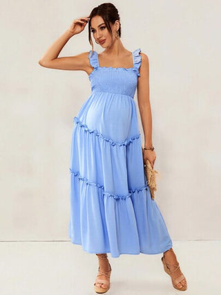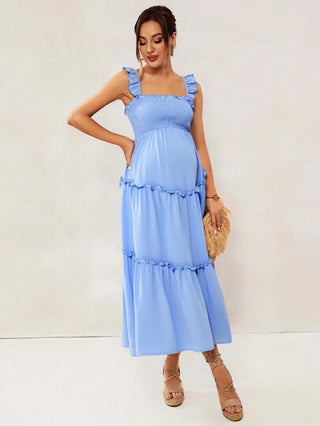 فستان حمل ضيق وطويل وعملي من النسيج الناعم والمريح والذي يلائم جسد المرأة الحامل مزود بحمالات الكتف لتبدو المرأة جذابة وعصرية في المناسبات اليومية العادية