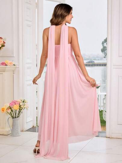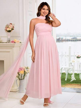 فستان حمل ، فستان حفل استقبال المولود الجديد مع وسط ملتف ، حاشية مكسرة ، وياقة