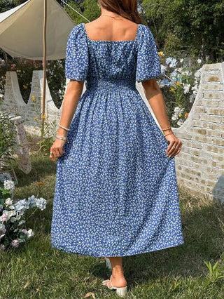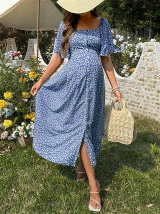 فستان حمل قصير الأكمام بياقة مربعة، أنيق للصيف
