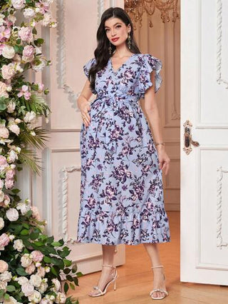 فستان حمل مزخرف بطبعة زهرية مع كسرات وحزام