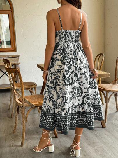 فستان طباعة زهور بلا أكمام للحمل للإجازة