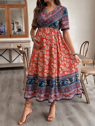 فستان طباعة زهور مُنقَّط بألوان عادي لمرحلة الحمل في العطلات
