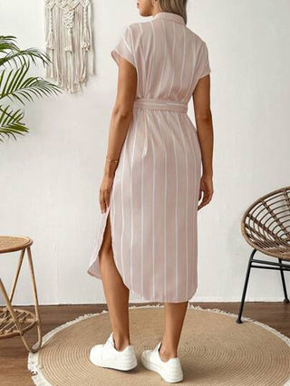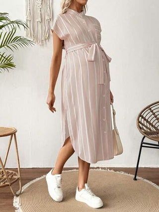 فستان قصير بأكمام خفافيش وجيب، كاجوال مخطط، مناسب للحمل، صيفي