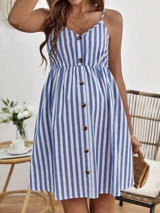 فستان كامي طباعة مخطط أزرار أمامية للأمومة