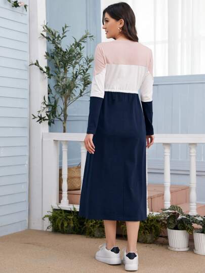 فستان للحمل بأكمام طويلة مع رباط خصر ملون