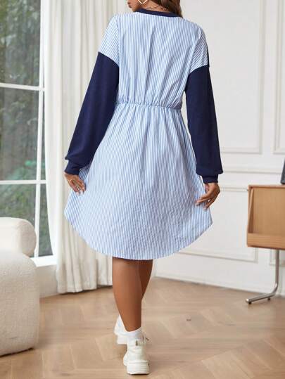 فستان منقط للحمل بأكتاف منخفضة ومنطقة خصر معقودة