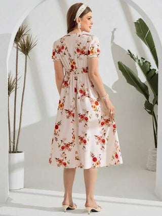 فستان نسائي مريح قصير الأكمام مطبوع بزهور للحمل