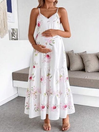 فستان نقشة زهور مائل للحمل مزين بالطرف المموج، عطلة