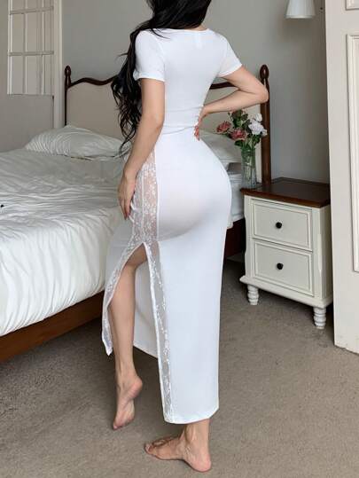 فستان نوم صيفي للنساء مصنوع من الدانتيل المحبوك ، أنيق
