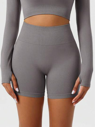 قطعة واحدة من شورت التحكم بالبطن ذو الخصر العالي، شورت يوجا خالي من الحياكة للنساء، مناسب للركض والتمارين الرياضية