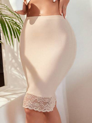 قطعتان تنورة بودي كون من الدانتيل مقاومة للشفافية للنساء، ذات مرونة عالية ومزودة بنطاق داخلي - تنورة قلم رصاص مشكلة ومنحفة