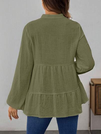 قميص سيدات حامل كاجوال أساسي كم طويل رقبة على شكل V