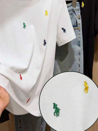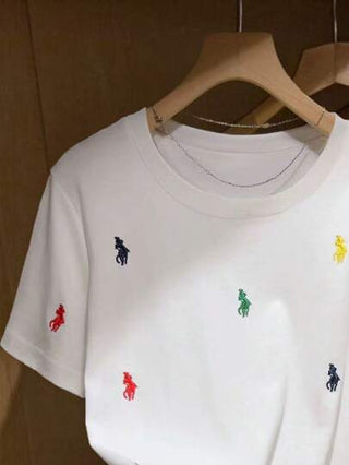 قميص كاجوال نسائي بأكمام قصيرة مطرز بالألوان، صيفي
