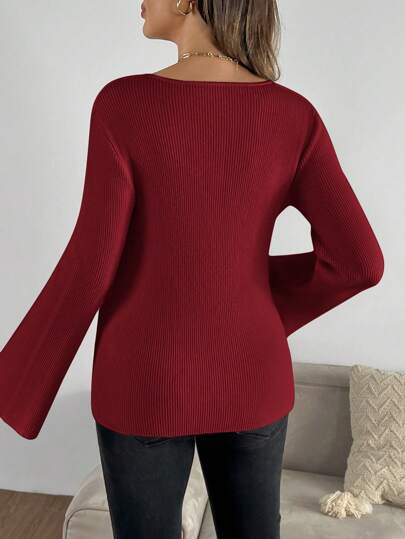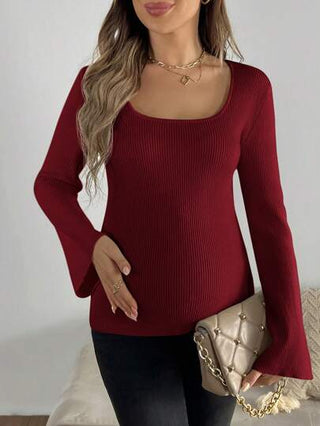 كنزة جامعة الياقة مربعة الياقة أجراس الأكمام قنوات مرقعة عادية للحوامل، خريف/شتاء، للحوامل