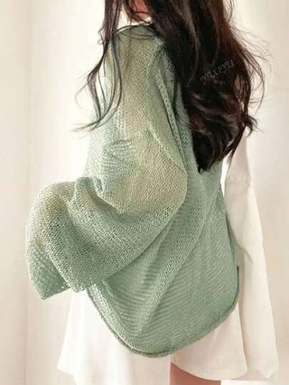 كنزة صوفية كاجوال بياقة مستديرة وأكمام طويلة ضيفة وحياكة فضفاضة بلون واحد